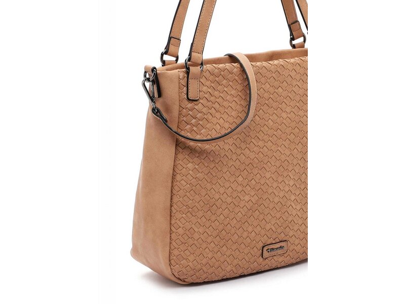 So wunderbar wie das Leben Natürlich, selbstbewusst und schön - so präsentieren sich Frauen im Alltag. Selbstverständlich am liebsten mit ihrer Lieblingstasche. Der Shopper Jelena kommt in Uni-Design mit Logo-Patch und sieht einfach gut aus. Er ist ein lässiges Statement für den Alltag. Ein Shopper auf den man zählen kann. Das Modell besteht aus Feinsynthetik und lässt sich mit einem Reißverschluss verschließen. Die Flecht-Optik und das Uni-Design sind fein gearbeitet und verleihen dem Shopper einen edlen Look. Ob jung oder nicht mehr ganz so jung, klassisch oder modern: Tamaris hat für jeden Style die große Auswahl an tollen Accessoires. Ordnung ist das halbe Leben. Ein übersichtliches Hauptfach sind in der Tasche integriert. Das Rückfach mit Reißverschluss ist perfekt, um weiteren Stauraum zu schaffen und Dinge unkompliziert griffbereit zu haben. Für alle, die eine weiche Haptik lieben - Jelena ist angenehm anschmiegsam. Einen zusätzlichen Akzent setzt das hübsche Logo-Patch. Über der Schulter ist dieses Modell mit dem praktischen, längenverstellbaren und abnehmbaren Umhängeriemen und den zwei Tragegriffen zu tragen. Manchmal braucht man etwas mehr Platz im Shopper - für solche Fälle eignet sich das Modell ideal, weil hier einfach alles hineinpasst, auf das man als Frau einfach nicht verzichten möchte.
