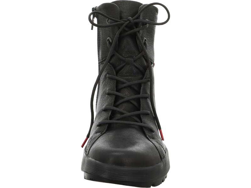 Die COMODA Stiefelette hält, was ihr Name verspricht. So bietet der optisch abgesetzte und leicht gepolsterte Schaft tollen Tragekomfort. Die Sohle der robusten Think! Schnürschuhe garantiert einen festen Grip und wirkt kälteisolierend sowie rutschhemmend. Das Wechselfußbett und seine Reparaturfähigkeit machen die COMODA Damenstiefelette erfreulich langlebig.