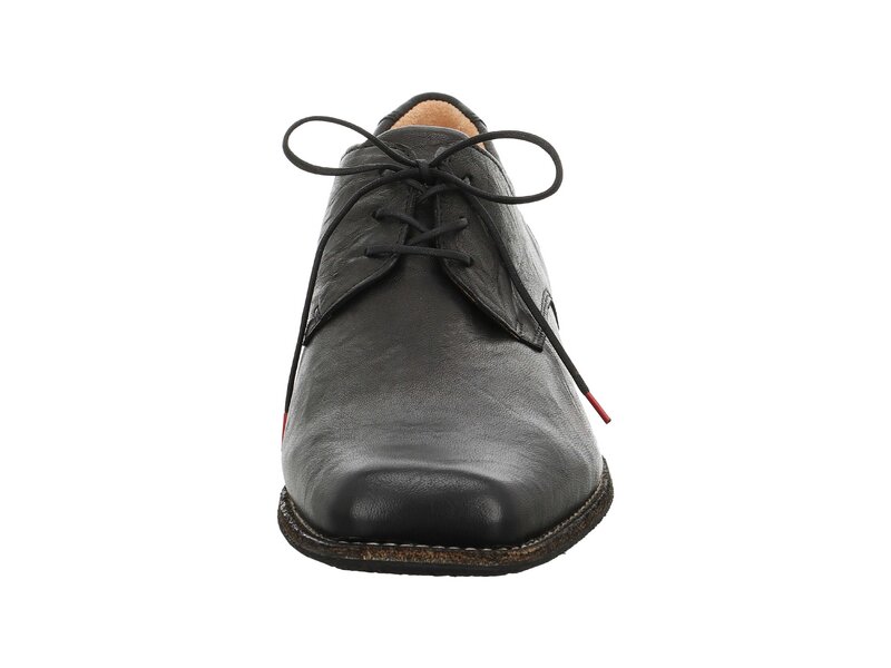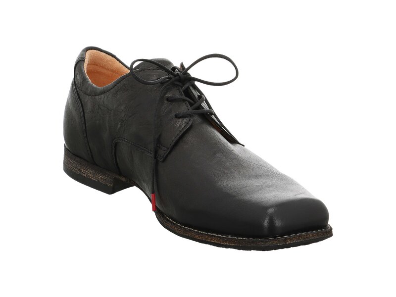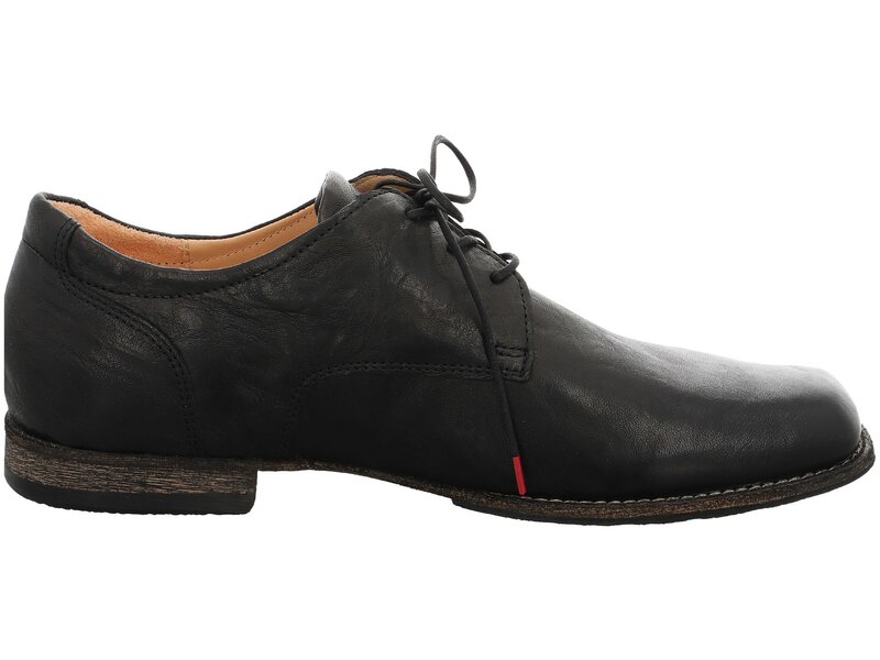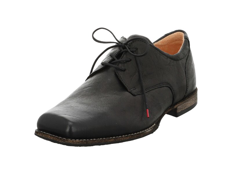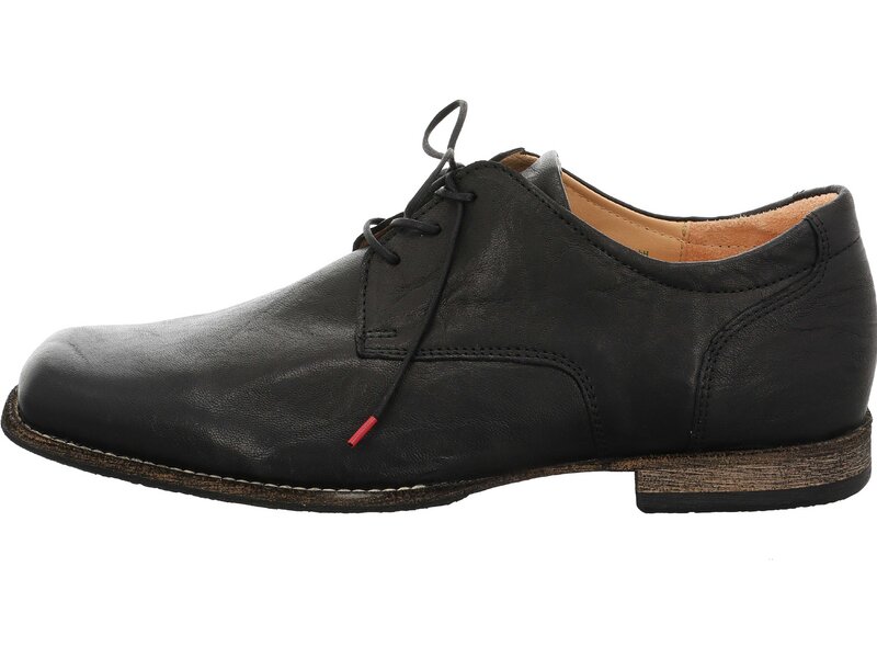 Klassisch im Auftreten passt der Schnürschuh GURU zu vielen Looks. Der Kombination aus leichter Karreeform, sanft hochgebogener Spitze und wetterfester Gummisohle verdankt der Think! Herrenschuh seine Extravaganz. Das weiche Nappaleder schmiegt sich dem Fuß an und sorgt für zusätzlichen Komfort. Durch die Schnürung lässt sich GURU perfekt an den Fuß anpassen und bietet maximalen Halt.