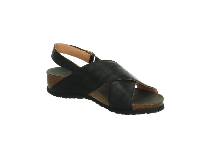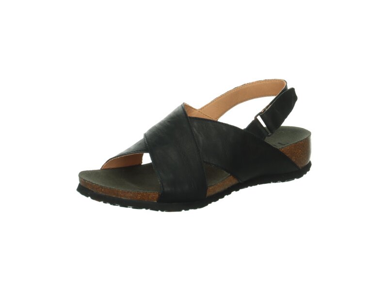 Die vorne überkreuzten Riemen verleihen der Tieffußbettsandale JULIA ihren modischen Look – genau wie die klassische Farbe. Das anatomische Korkfußbett der Think! Riemchensandale verspricht dabei mindestens so viel Tragekomfort wie das besonders weiche Ziegennappa. Der Fersenriemen sorgt für festen Halt und lässt sich dank dem Klettverschluss genau auf die richtige Passform einstellen. So passt JULIA einfach immer.