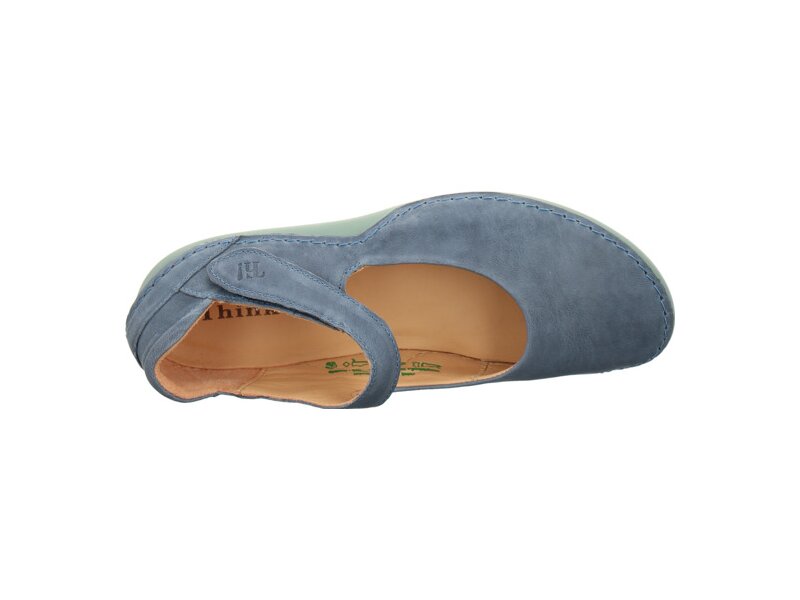 Höchster Tragekomfort trifft typischen Think! Look mit dem KAPSL Ballerina. Der Schuh mit der speziellen Machart und der eigenwilligen Sohle wird aus einem angenehm anschmiegsamen, chromfrei gegerbten Nappaleder gefertigt. Durch das verstellbare Riemchen mit Klettverschluss kann der Slipper perfekt an den Fuß angepasst werden. Außerdem bekommt KAPSL damit eine feminine Note.