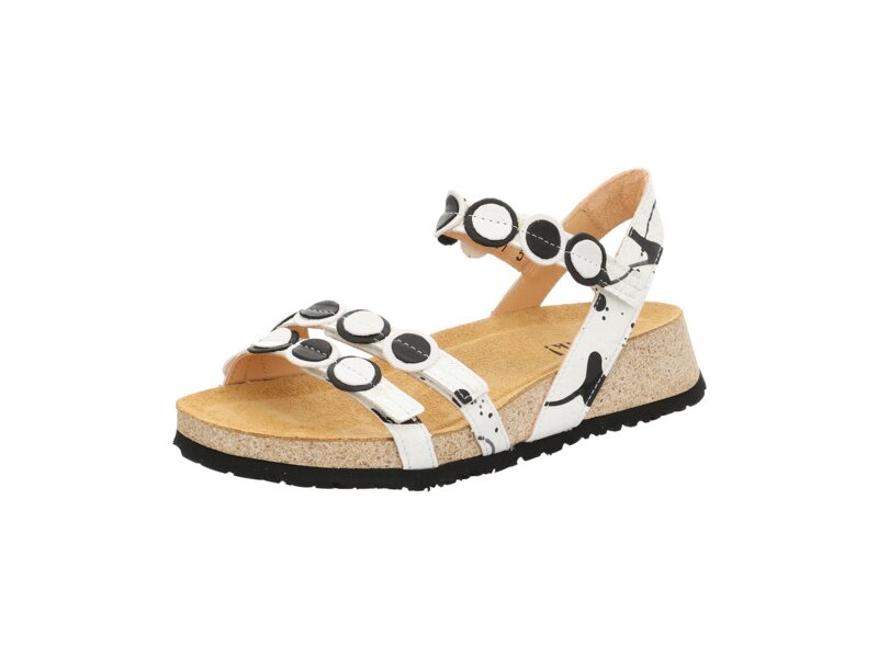 Die Riemchensandale KOAK ist aus besonders anschmiegsamem Leder gefertigt. Dadurch werden Druckstellen vermieden. Die kreisrunden aufgesteppten Effektlederdetails an den Riemen verleihen der Sandale den typischen Think! Look. Die 3 Riemen sind individuell verstellbar – für besten Halt. Das anatomische Korkfußbett sorgt bei KOAK – zusammen mit der weichen Sohle – für ein perfektes Tragegefühl.