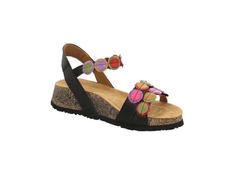 Die Riemchensandale KOAK ist aus besonders anschmiegsamem Leder gefertigt. Dadurch werden Druckstellen vermieden. Die kreisrunden aufgesteppten Effektlederdetails an den Riemen verleihen der Sandale den typischen Think! Look. Die 3 Riemen sind individuell verstellbar – für besten Halt. Das anatomische Korkfußbett sorgt bei KOAK – zusammen mit der weichen Sohle – für ein perfektes Tragegefühl.
