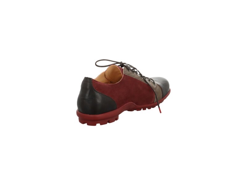 Ein Statement für Individualisten ist der Schnürschuh KONG mit dem seitlich aufgestickten Ausrufezeichen in Leder und der abgesetzten Kappe. Das besonders weiche Material trägt bei dem lässigen Think! Halbschuh genauso zum Tragekomfort bei, wie die asymmetrischen Schuhspitzen. Denn die lassen den Zehen reichlich Bewegungsfreiheit. KONG ist ein Klassiker in puncto bequeme Lässigkeit.