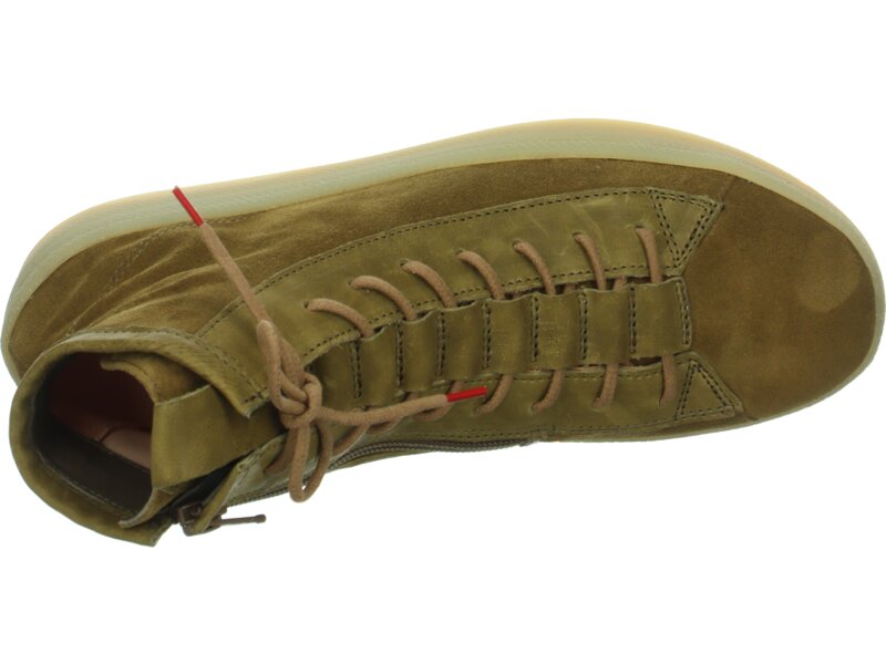Lässig und spannend zugleich kommt der Schnürschuh KUMI daher. Bei dem Think! Sneaker läuft die Schnürung durch ein aufgestepptes Lederband mit Schlaufen, das oben umgeschlagen ist, was ihm nicht nur einen coolen Look verleiht sondern auch für festen Halt dank Verstellbarkeit sorgt. Die leichte Keilform der Naturkautschuksohle in Sneaker-Optik macht den casual Auftritt mit KUMI komplett.