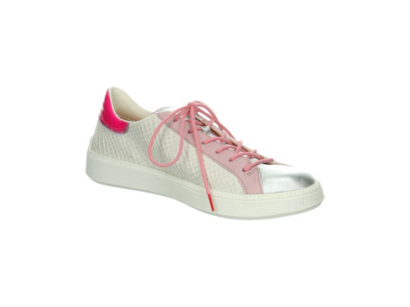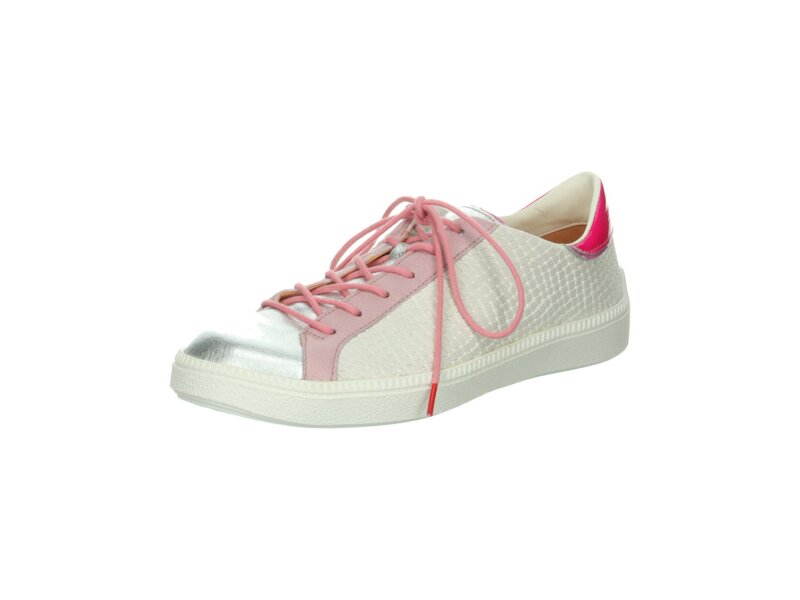 Mit dem Sneaker TURNA gelingt jederzeit ein glänzender Auftritt. Vorne ist der Think! Halbschuh silbern und an der gepolsterten Ferse ist er mit Lackleder in knalligem Pink gearbeitet. Das weiße Leder in Schlangenoptik und die rosafarbenen Schnürleisten runden den unverwechselbaren Look des sportiven Sneakers ab. Komfort kann TURNA dank superweichem Leder und dämpfender Latexsohle natürlich ebenfalls.