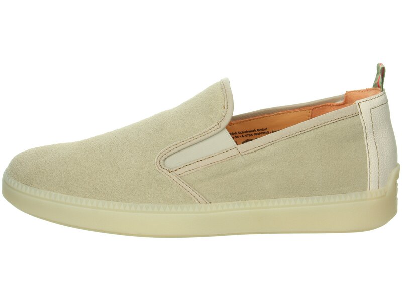 Der Slipper TURNA ist der perfekte Sommerschuh. Das liegt zum einen an seiner Farbe, zum anderen an seinem cleanen Schlupfschnitt mit der Fersenschlaufe und den eingesetzten Elastikbändern, dank derer Mann in den Think! Sneaker ganz lässig hineingeschlüpft ist. Das weiche Material, ein Fersenpolster und die dämpfende Latexsohle machen TURNA zu einem echten Komfortschuh.