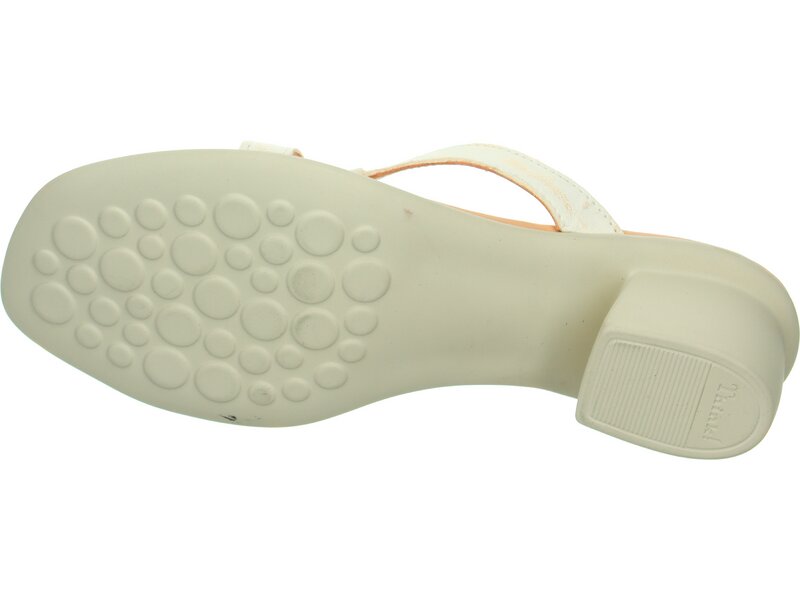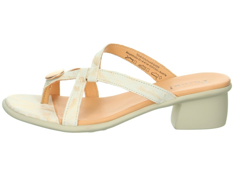 Sommerlich-beschwingt bietet die Absatzsandale VIVI als Zehentrenner viel Komfort. Die Think! Sandalette ist besonders leicht und mit einer dämpfenden Latexinnensohle ausgestattet. Dank der modischen Karréeform haben Fuß und Zehen genügend Platz – eine wahre Wohltat im Sommer. Die schmalen, leicht versetzten Riemchen und der dekorative Knopf auf dem Zehenriemchen garantieren den stylishen Auftritt mit VIVI.