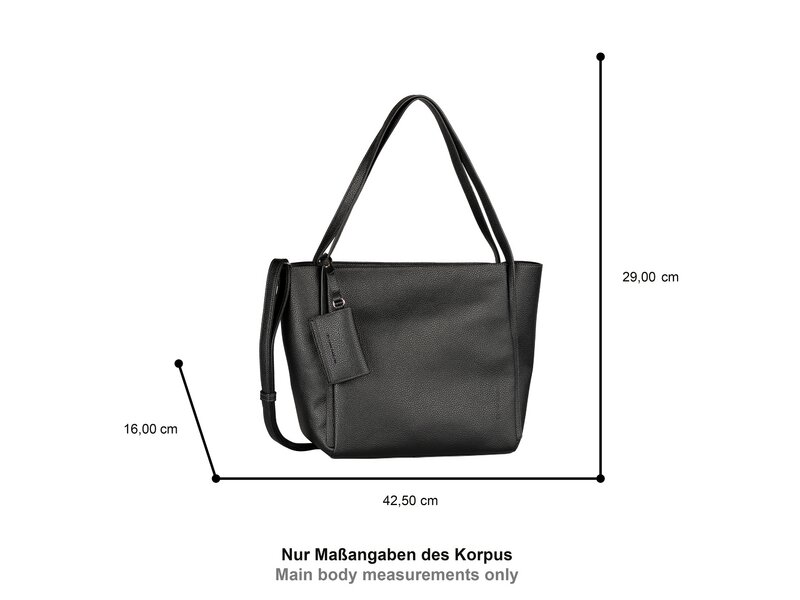 Weiches Lederimitat, die geradlinige Schnittführung und eine klare, kühle Farbgebung verschmelzen bei der Serie Amarea zu einer angenehmen Symbiose an Modernität, die keinen Kompromiss stilistischer Art zulässt. Die Besonderheiten der Modelle sind die auffallende Kantenverarbeitung sowie der funktionale, abnehmbare Anhänger. Großer Shopper mit Reißverschlusshauptfach. 1 Reißverschlussfach hinten. DIN A4 geeignet. 1 Reißverschlussfach, 1 Handyfach, 1 Steckfach innen. 2 Henkel, 1 abnehmbarer, verstellbarer Schulterriemen, 1 abnehmbare Anhängertasche.