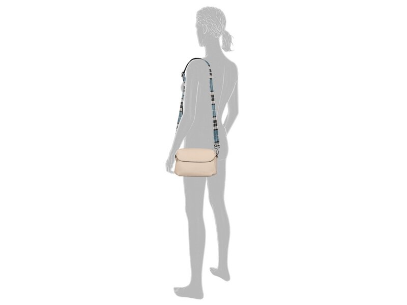 Die Umhängetasche Chrissi aus weichem Lederimitat besticht durch ihr kompaktes Format, die sichere Reißverschlussöffnung und den modernen geometrischen Überschlag. Modisches Highlight ist der karierte Schultergurt aus breitem Gewebeband. Umhängetasche mit Magnetverschluss. 1 Reißverschlussfach hinten. 1 Reißverschlussfach innen. 1 abnehmbarer, verstellbarer Schulterriemen aus Gewebeband.