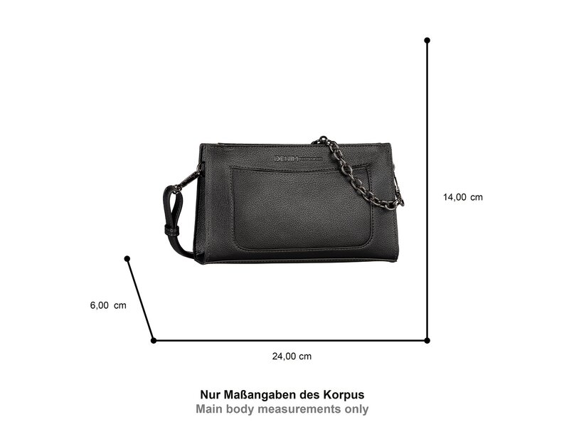Lang und schmal geschnitten aus griffigem Lederimitat, kontrastgefärbten Kanten und einer aufwändig verarbeiteten Vortasche, besticht Style Lennon besonders durch ein komplett abnehmbares Stück Metallkette am Schulterriemen, um den Style abendfein zu machen. Kleine Umhängetasche mit Reißverschlusshauptfach. 1 Steckfach vorne, 1 Reißverschlussfach hinten. Innen 1 Reißverschlussfach, 1 Handyfach. 1 abnehmbarer, verstellbarer Schulterriemen mit abnehmbarer Kette.