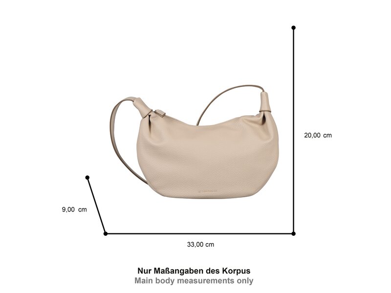 Das regelmäßig gekörnte Lederimitat sorgt für eine ruhige Struktur auf dem ebenfalls cleanen Design von Liliana. Lediglich die eingelegten Falten, der extra breite Schulterriemen und die filigrane Logoprägung bringen subtile Spannung auf die weichen Modelle. Mittelgroße Umhängetasche mit Reißverschlusshauptfach. 1 Reißverschlussfach hinten. 1 Reißverschlussfach, 1 Handyfach innen. 1 fixierter, verstellbarer Schulterriemen.