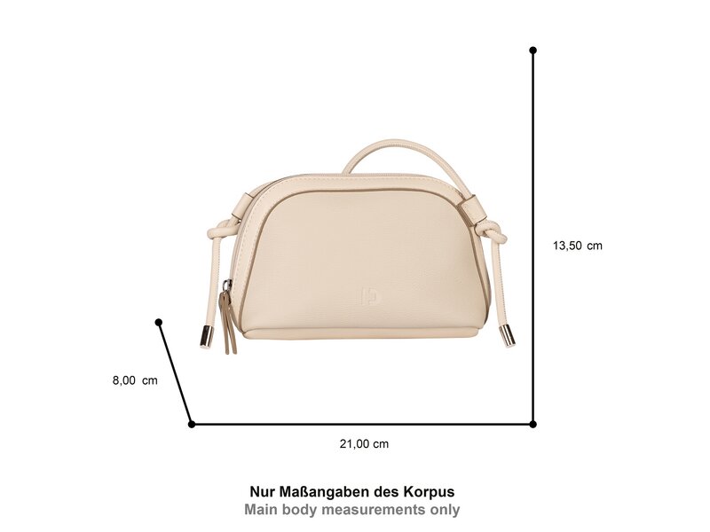 Die Taschengruppe Madelyn zeichnet sich durch ihre schlichte und zugleich moderne Linienführung aus. Farblich abgesetzte Kanten betonen den formgebenden Einfass. Abgerundet werden die Modelle aus weich genarbtem Kunstleder durch verstellbare Kordelriemen. Kleine Umhängetasche mit Reißverschlusshauptfach. 1 Reißverschlussfach, 1 Steckfach innen. 1 fixierter, verstellbarer Schulterriemen.