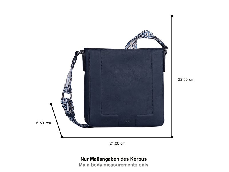 Schlichte Formen mit einem besonderen Akzent: Ein gemustertes Gewebeband als Schulterriemen ergänzt effektvoll das minimalistische Design. Bombierte Details auf der Vorderseite verleihen den Styles der Taschengruppe Nani eine elegante Dreidimensionalität. Mittelgroße Umhängetasche mit Reißverschlusshauptfach. 1 Reißverschlussfach hinten. 1 Reißverschlussfach, 1 Handyfach innen. 1 fixierter, verstellbarer Schulterriemen aus Gewebeband.