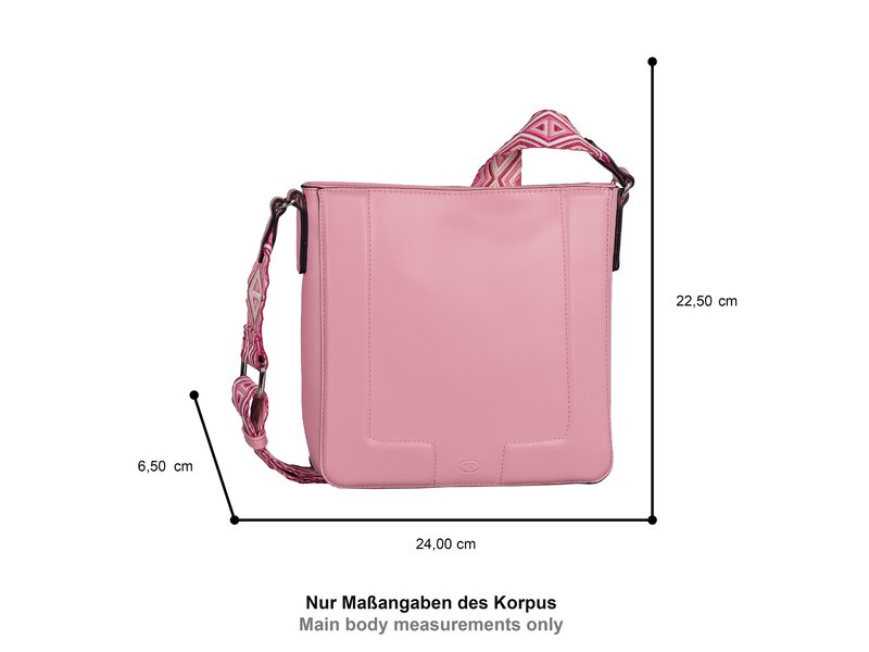 Schlichte Formen mit einem besonderen Akzent: Ein gemustertes Gewebeband als Schulterriemen ergänzt effektvoll das minimalistische Design. Bombierte Details auf der Vorderseite verleihen den Styles der Taschengruppe Nani eine elegante Dreidimensionalität. Mittelgroße Umhängetasche mit Reißverschlusshauptfach. 1 Reißverschlussfach hinten. 1 Reißverschlussfach, 1 Handyfach innen. 1 fixierter, verstellbarer Schulterriemen aus Gewebeband.