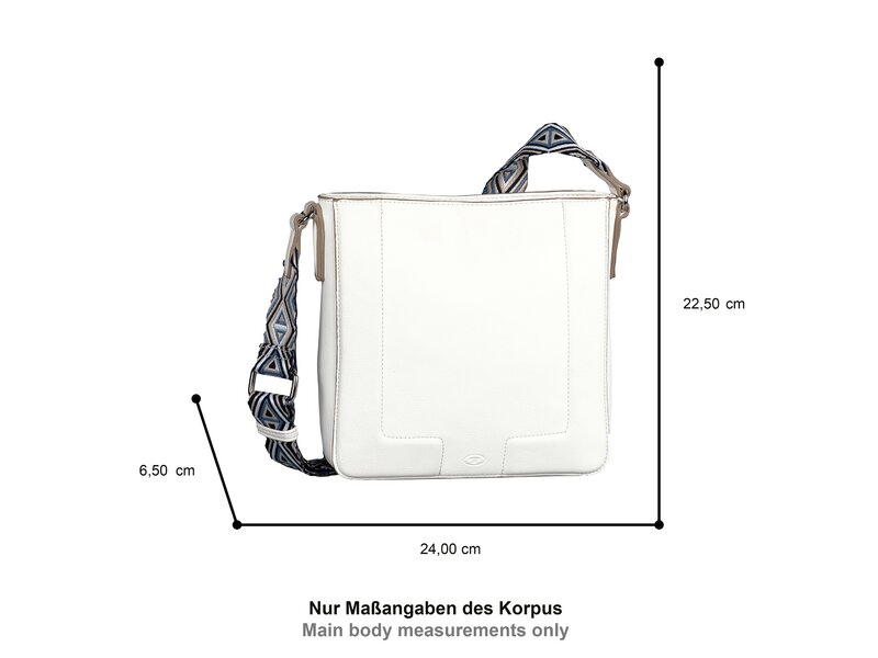 Schlichte Formen mit einem besonderen Akzent: Ein gemustertes Gewebeband als Schulterriemen ergänzt effektvoll das minimalistische Design. Bombierte Details auf der Vorderseite verleihen den Styles der Taschengruppe Nani eine elegante Dreidimensionalität. Mittelgroße Umhängetasche mit Reißverschlusshauptfach. 1 Reißverschlussfach hinten. 1 Reißverschlussfach, 1 Handyfach innen. 1 fixierter, verstellbarer Schulterriemen aus Gewebeband.