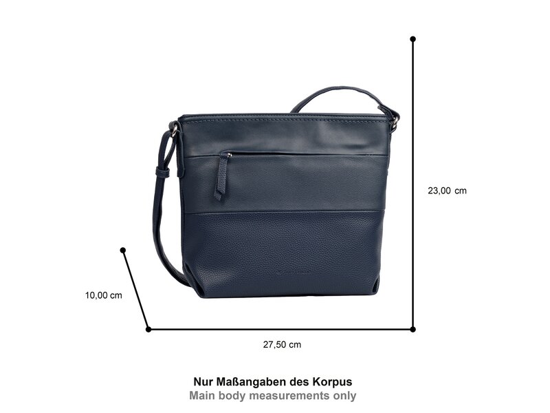 Der Dreiklang aus unterschiedlichen Lederimitatstrukturen verschmilzt harmonisch auf den Styles der Gruppe Nicolina. Perfekt ergänzt werden die Modelle durch diverse Verstaumöglichkeiten. Mittlere Umhängetasche mit Reißverschlussöffnung, 1 verdeckte Reißverschlusstasche vorne, 1 Reißverschlussfach hinten. Innen 1 Reißverschlussfach, 1 Smartphone-Fach, 1 Steckfach. 1 langer verstellbarer Schulterriemen.