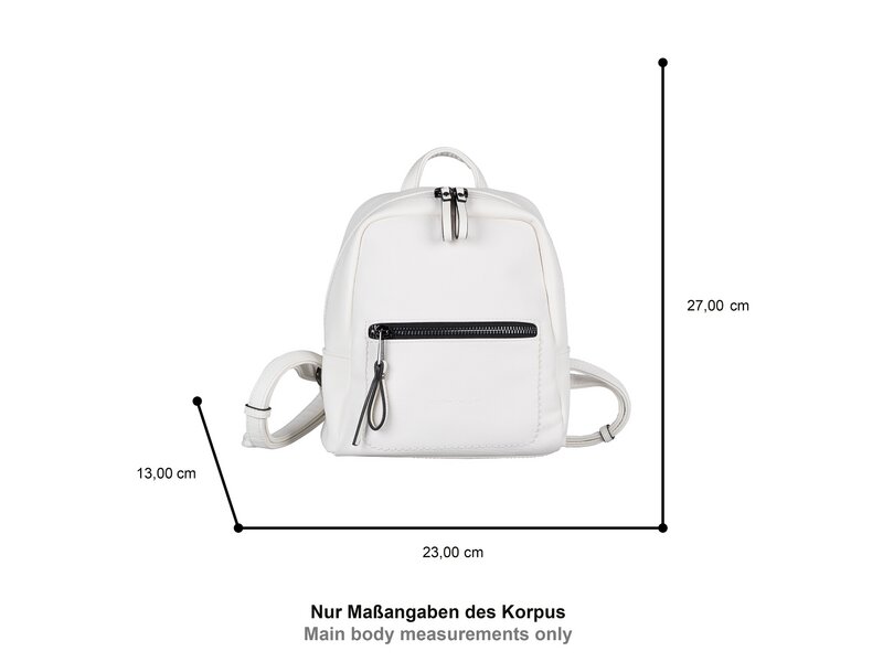 Ein Klassiker der Tom Tailor Kollektion in neuer Ausführung: Der praktische Rucksack Tamara mit reichlich Verstaumöglichkeiten ist aus glattem Lederimitat gefertigt und mit Kunstleder in Canvas-Optik besetzt, das für einen sportlichen Look sorgt. Kleiner Rucksack mit Reißverschlussöffnung, 1 Metallreißverschlussfach vorne, 1 Reißverschlussfach hinten. Innen 1 Reißverschlussfach, 1 Smartphone-Fach, 1 Steckfach. 1 Kurzgriff, 2 verstellbare Schulterriemen.