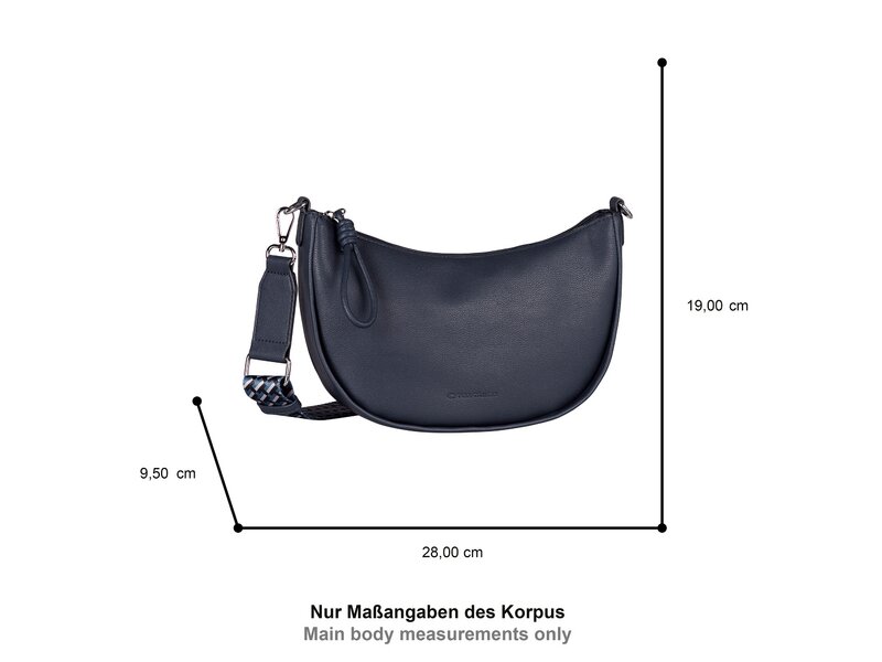 Charmante Taschengruppe aus täuschend echtem Lederimitat, bei dem alle Styles in einer Art weichem Rahmen eine dezente Betonung erfahren. Der Clou bei Tatiana ist das fein gewebte Gurtband mit dreifarbigem Alloverdruck. Hierbei wurden die Tom Tailor „T“´s sehr harmonisch und ebenso dezent in die Druckgrafik integriert. Umhängetasche mit Reißverschlusshauptfach. 1 Reißverschlussfach hinten. 1 Reißverschlussfach, 1 Handyfach innen. 1 abnehmbarer, verstellbarer Schulterriemen aus Gewebeband.