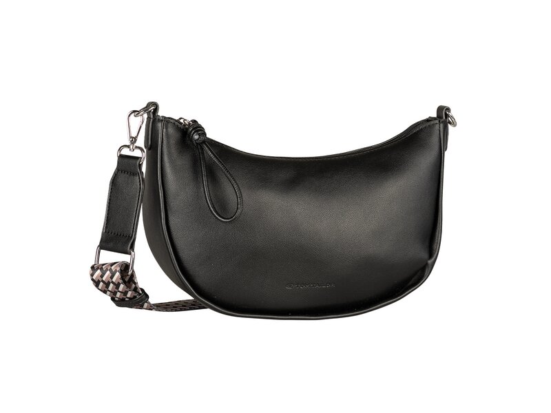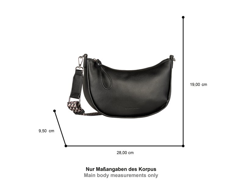 Charmante Taschengruppe aus täuschend echtem Lederimitat, bei dem alle Styles in einer Art weichem Rahmen eine dezente Betonung erfahren. Der Clou bei Tatiana ist das fein gewebte Gurtband mit dreifarbigem Alloverdruck. Hierbei wurden die Tom Tailor „T“´s sehr harmonisch und ebenso dezent in die Druckgrafik integriert. Umhängetasche mit Reißverschlusshauptfach. 1 Reißverschlussfach hinten. 1 Reißverschlussfach, 1 Handyfach innen. 1 abnehmbarer, verstellbarer Schulterriemen aus Gewebeband.