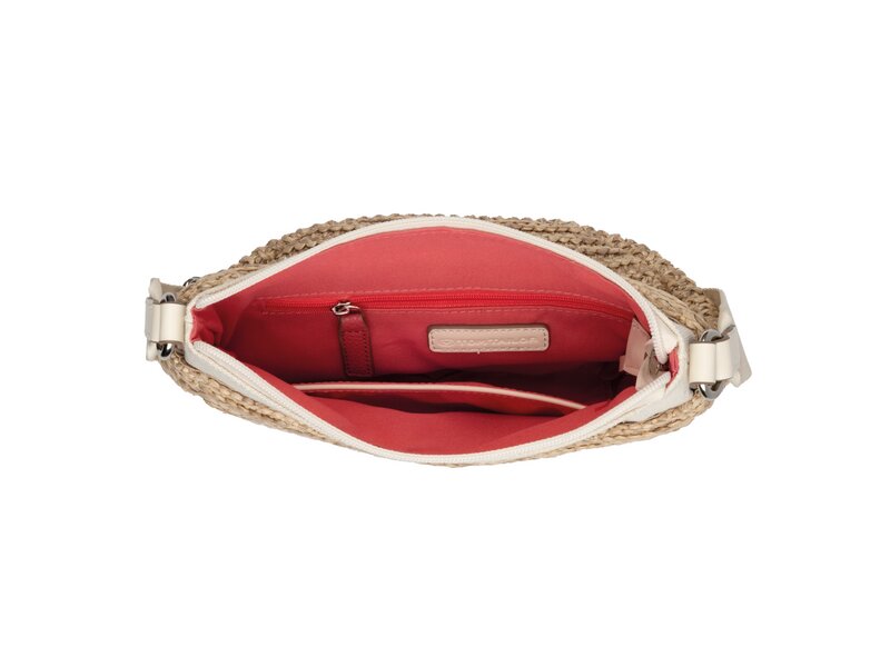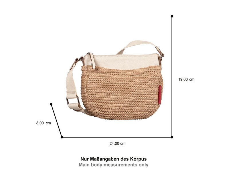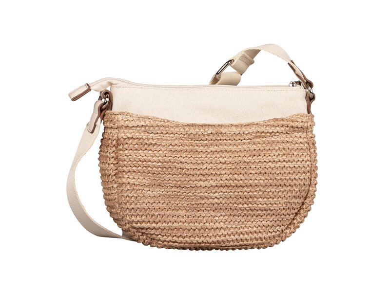 Die Materialkombination aus Bast, Stoff und Gewebeband verleiht der Taschenserie Vicky von Tom Tailor einen coolen Sommerlook. Die Verwendung dieser Materialien geben der Tasche eine natürliche Eleganz, die perfekt zu frischen Sommeroutfits passt, egal ob in der Stadt oder am Meer. Kleine Details in Kontrastfarbe setzen frische Akzente. Kleine Umhängetasche mit Reißverschlusshauptfach. 1 Reißverschlussfach, 1 Handyfach innen. 1 fixierter, verstellbarer Schulterriemen aus Gewebeband.