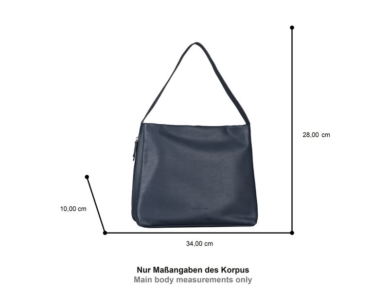 Das cleane Design der Tom Tailor Yuma Styles passt zu jedem Outfit und bietet dennoch einen coolen Twist durch zahlreiche, ebenso ungewöhnliche wie praktische Verstaumöglichkeiten. Beuteltasche mit Reißverschlusshauptfach. 1 Reißverschlussfach seitlich, 1 Reißverschlussfach hinten. 1 Reißverschlussfach, 1 Handyfach, 1 Steckfach innen. 1 Henkel.