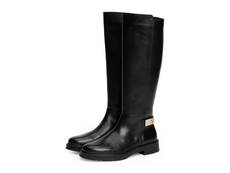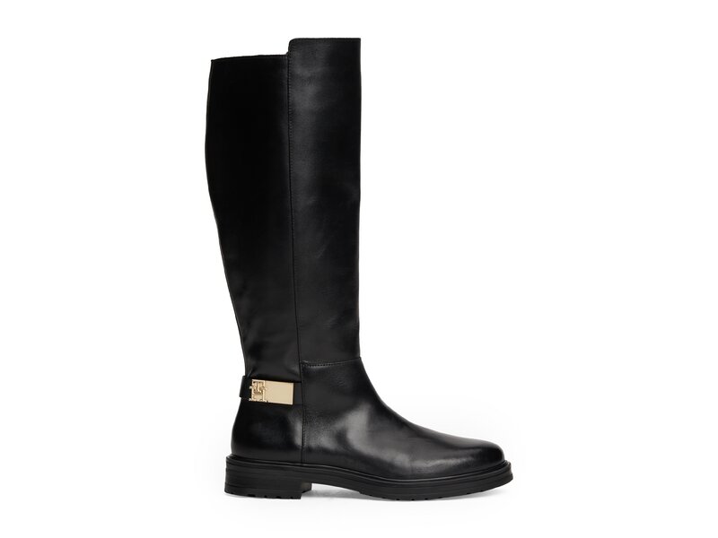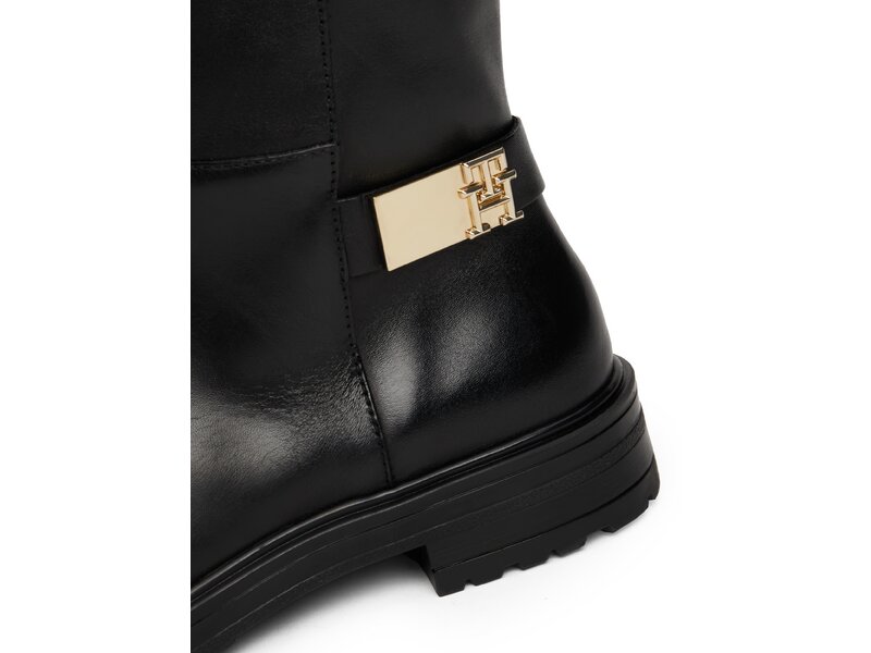 Tommy Hilfiger-TH LOGO LEATHER LONG BOOT-Schwarz