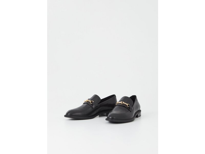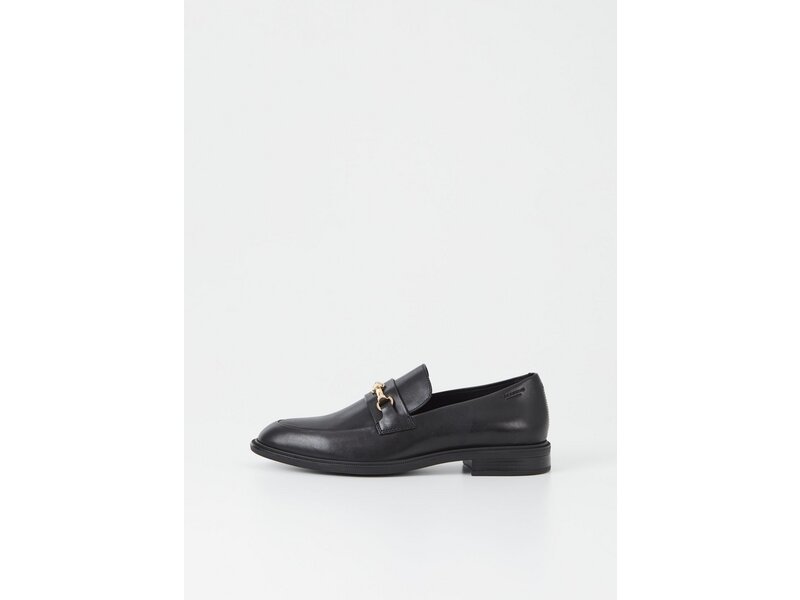 Der Vagabond Loafer Frances ist ein eleganter Slipper, der durch seine zeitlose Form, ein Klassiker ist. Der Loafer wird aus schwarzem Glattleder, mit einer schmalen Spitze und goldenem Kettendetail hergestellt. Die Sohle ist flach (2,9 cm hoch). Für eine langanhaltende Pflege: Verwenden Sie Schuhcreme, um die Lebensdauer der Schuhe zu verlängern.