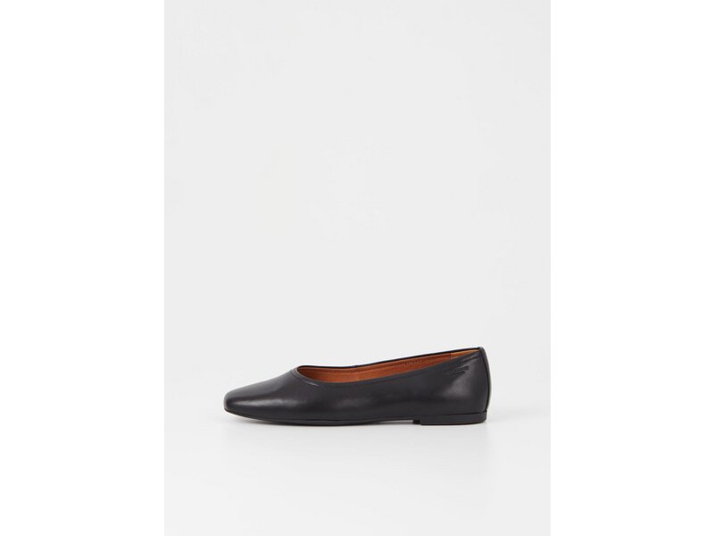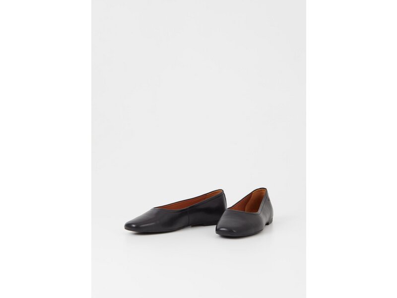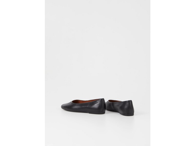Vagabond Jolin ist ein Alltagsballerina mit minimalistischem Design. Sie sind aus schwarzem Leder gefertigt und verfügen über eine abgerundete Spitze, Lederfutter und einer Innensohle aus Leder. Die Absatzhöhe beträgt 1,1 cm.